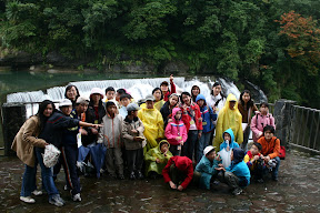 經過吊橋走過鐵道旁.十分寮瀑布是我們中午用餐的地方.