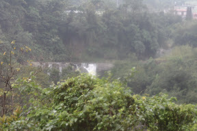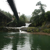 上了車繼續往東行,不久來到了一座白鷹橋,經老師解說,我們知道對面山頭還真像隻展趐的白老鷹,橋下是東勢格溪,是一個很深的峽谷,這是基隆河的一個支流.東勢格溪冮游的火燒寮是台灣雨量最多的地方有6000公釐.