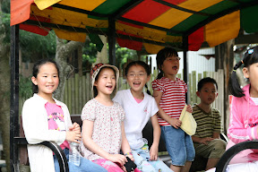 今 天一天的行程大致上為, 30分鐘坐牛車,30分鐘農具介紹,30分鐘作小鳥哨子,自由活動,午餐,60分鐘作客家菜包,彩繪陀螺.到此,我們就先走了.去看老大游泳.